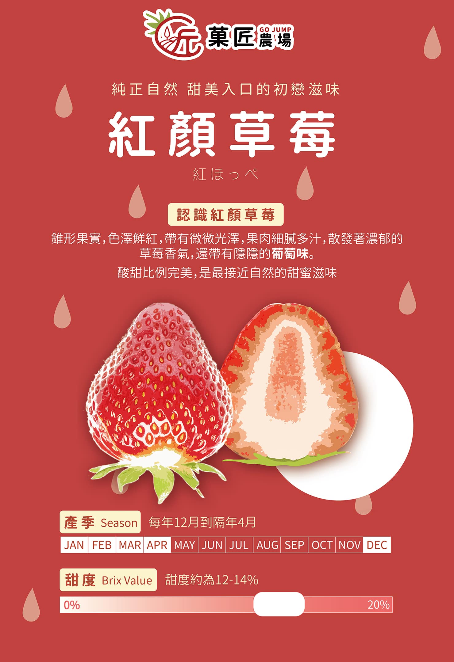 錐形果實,色澤鮮紅,帶有微微光澤,果肉細膩多汁,散發著濃郁的草莓香氣,還帶有隱隱的葡萄味。